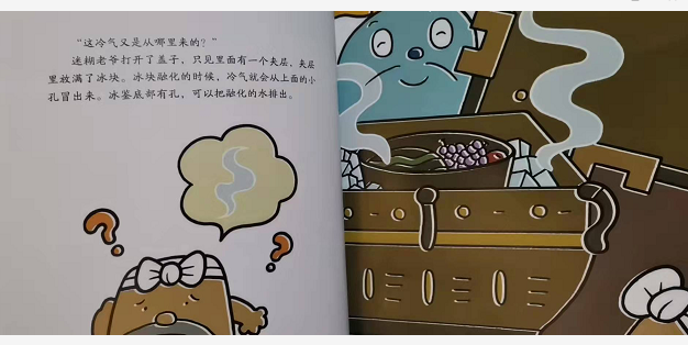 这个夏天太热了,逗逗镇居民们都快要热中暑,只有迷糊老爷悠闲自在,好像一点也不觉得热。原来,迷糊老爷家有一个宝贝冰鉴,可以做冰镇酸梅汤,还可以给室内降温。这事儿传到了逗逗皇帝那里,他也想看看这个宝贝。于是,迷糊老爷给逗逗皇帝演示了冰鉴的用法,并把它送给逗逗皇帝。迷糊老爷又请人制作了一个改良版的冰鉴,比之前的那个更好用了。