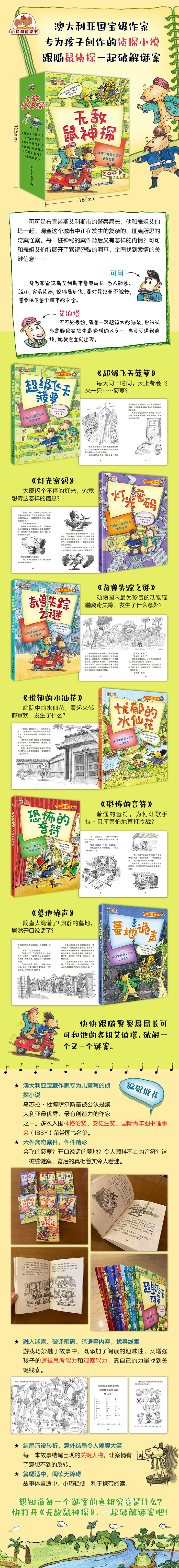 ★澳大利亚获奖童书童书作家作品。 ★适合小学低年级学生的桥梁书。 ★章节篇幅短小精炼,情节紧凑,实现从亲子共读到独立阅读的过渡。 ★设计巧妙,游戏与阅读的完美结合。 ★充满想象的剧情,打开孩子的脑洞,穿插孩子喜欢的破案游戏,增强趣味性。