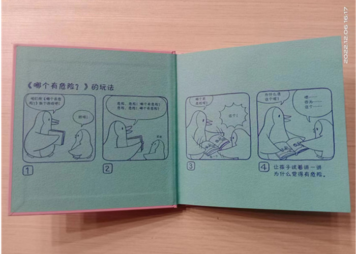 咱们用《哪个有危险》做个游戏吧! 危险,危险!哪个有危险? 危险,危险!哪个有危险? 哪个有危险呢?这个 为什么选这个呢? 嗯…… 因为…… 这个……