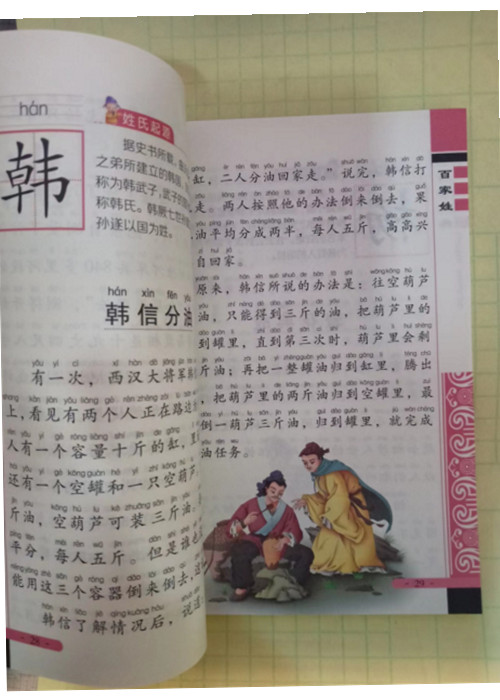 《百家姓》是中国古代启蒙读物中较有代表性的一种。早期的《百家姓》收录常用姓氏410个,现在所见*为普及的版本收录姓氏438个。在民间广为流传的则是图文并茂的《增广百家姓》,收录姓氏504个。尽管明朝有《皇明千家姓》,清朝有《御制百家姓》,但流行*广的当属北宋钱氏编著的以“赵钱孙李”开篇的《百家姓》,该书家喻户晓,妇孺皆知,是儿童启蒙的之书。