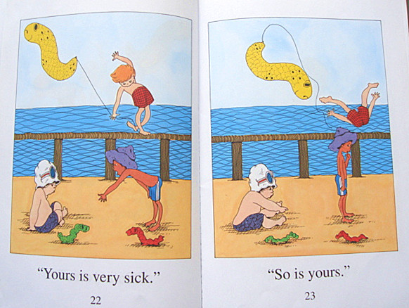 我儿子快4岁,最近开始给他念整本的英文书。一下子在安妮书馆借了10本,其中儿子最喜欢的就是这本。语言非常简单,图画逼真,故事反映孩子之间的纷争,儿子每天都要我念一遍这本书,而且会开心笑!值得推荐