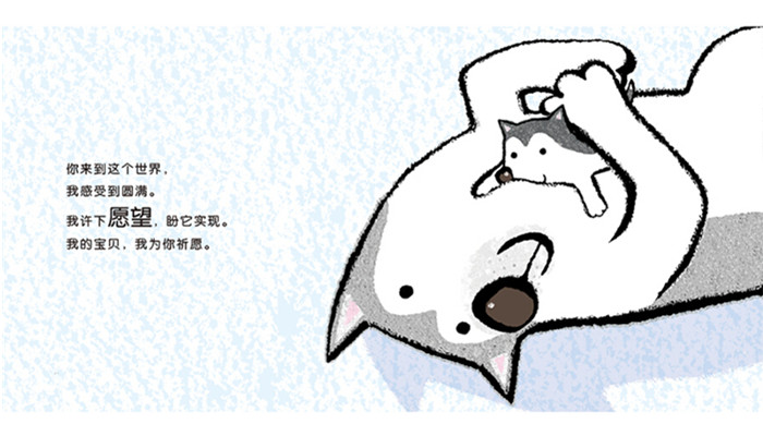 我的愿望就是,你的愿望全都实现……《愿》选自暖房子亲子共读绘本《爱的表白书》。本书用可爱温馨、细腻舒畅的图画展现了狼妈妈和小狼的日常生活场景:我爱与你齐头并进,昂首前行。