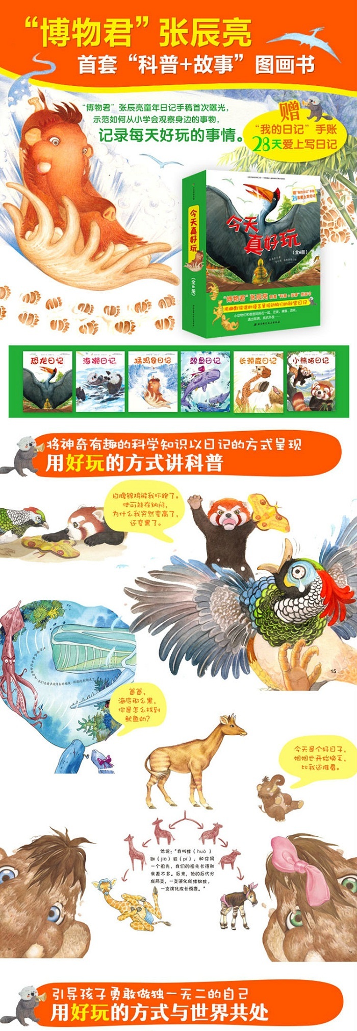 1、千万粉丝心目中的“博物君”张辰亮 第1套写给孩子的幽默科普图画书