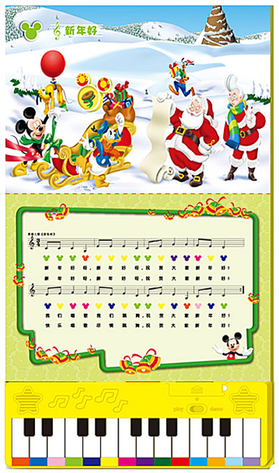 小小钢琴和乐谱完美的结合,该书收录了10首经典的儿歌,配有10页活泼可爱的颜色识别乐谱。键盘上的每个按键均有和乐谱对应的颜色符号,不懂五线谱也能轻松弹奏出完整乐曲哟!有两种操作模式:调到欣赏模式,钢琴里会飘出一首首动听的儿歌。孩子看着书中的歌词学歌、唱歌。调到弹奏模式,就可以看着乐谱自己弹奏,还能自由发挥创作新歌。不仅可以给孩子满满成就感,同时有助于训练手眼协调和小肌肉发展,更可以提升孩子对音乐的兴趣和艺术创作力!