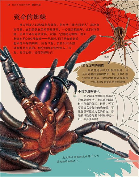 杰尼·斯科特、皮特·里斯编著的《澳大利亚(你所不知道的世界)/lonely planet》配以400幅照片和插画,生动有趣的给孩子们讲解澳大利亚的风土人情和特色之处。本书不是一本单纯的旅行指南,而且也不是给爸爸妈妈看的书。本书讲述了一个真实的、鲜为人知的澳大利亚——世界上最令人神往的国家之一。