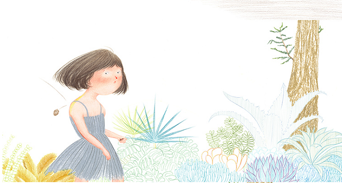 这本书讲述了小女孩得到小松鼠的帮助从而学会排解坏情绪的故事。小女孩一开始就有些垂头丧气,头顶又被不知从哪儿来的“石子”敲了几下,变得更生气了。很明显,小女孩的内心是紧闭的,对外面的世界充满戒备。直到小松鼠跳下树梢,向她伸出了友谊之手,引领她爬上树梢,看到了广阔天地,小女孩的内心才随之打开。