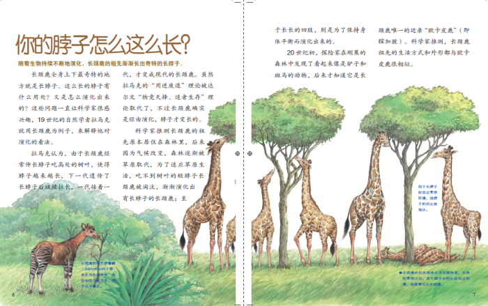 《小牛顿科学全知道31》专题报道讲的是长颈鹿,长颈鹿全身上下*奇特的地方就是长脖子。这么长的脖子有什么用处呢?它又是怎么演化出来的呢?它身上的不同花纹,代表着什么不同的意思呢?