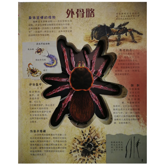 什么东西有八只眼睛,蓝色的血液,巨大的毒牙,还有四对长长的、毛茸茸的腿?不,这可不是在说什么外星系的怪物。所有这些怪异的特征形容的都是狼蛛。本系列是精美的纸板书,中间镂空装有透明胶片,每页展示生物的一部分系统。让小读者在有趣的翻页中学到生物知识。《有趣的透视立体书(全7册)》包括人体、狼蛛、恐龙、鲨鱼、青蛙、马、犬。本册为《透视奇妙的狼蛛》带领小读者进行了一次不可思议的狼蛛的体内巡游。
