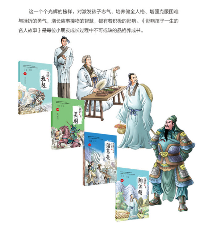 书中故事皆以史实为依据,展现历史名人波澜起伏的一生。让孩子们知道,伟大人物的一生并不只有成就和光辉,也曾经历挫折,克服缺点……进而主动模仿,向名人看起。