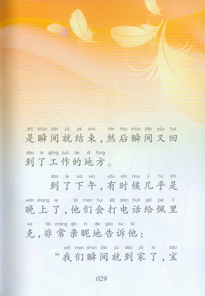 有一只鹦鹉名叫“瞬间”,它是一个小男孩的宠物。在小男孩的生活里,什么都急匆匆、在瞬间发生。所以,小男孩最渴望的就是充裕的时光。有一天,他跟随鹦鹉“瞬间”来到了它出生的森林,这里的一切都是那样悠闲美好,而最让小男孩羡慕的,就是所有的小动物们都有爸爸妈妈的陪伴。