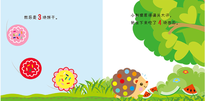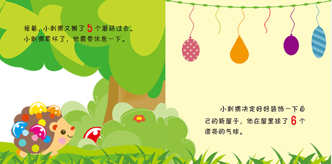 本书一系列共3册,分别为《森林里的智力游戏》《聪明的小刺猬》《比比看》,分别从认知环境,数理认知,对比认知几个方面,让孩子的潜能得到全方面的发展。本书是其中的1册,书名为《聪明的小刺猬》。本书采用婴幼儿图书中比较受欢迎的翻翻书的形式,每页至少有1处翻翻,一个对页1-3处翻翻,通过有趣的故事情节,巧妙的设计,充分调动小朋友的的好奇心和阅读兴趣,让孩子爱上阅读。本书是该系列中的一本,通过一只小刺猬在路上所看到和遇到的事物,在潜移默化之中教会小朋友从1数到10,在不知不觉中进行数理认知。本书语言简洁,十分符合婴幼儿的语言发展状况,图片清晰简洁色彩温和,能够很好地保护婴幼儿的新生视力。