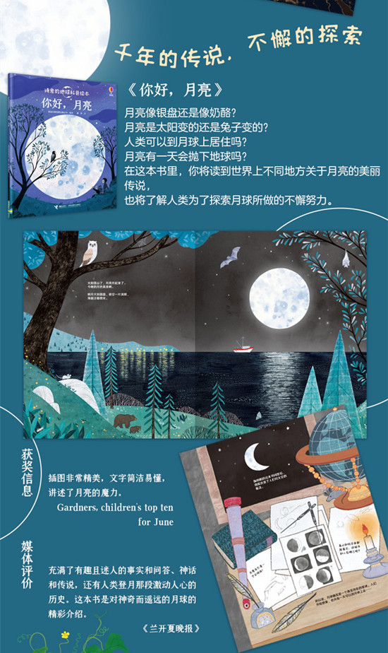 月亮像银盘还是像奶酪?月亮是太阳变的还是兔子变的?人类可以到月球上居住吗?月亮有一天会抛下地球吗?在这本书里,你将读到世界上不同地方关于月亮的美丽传说,也将了解人类为了探索月球所做的不懈努力。