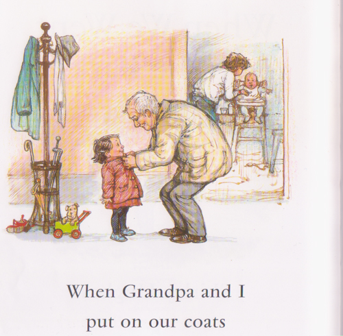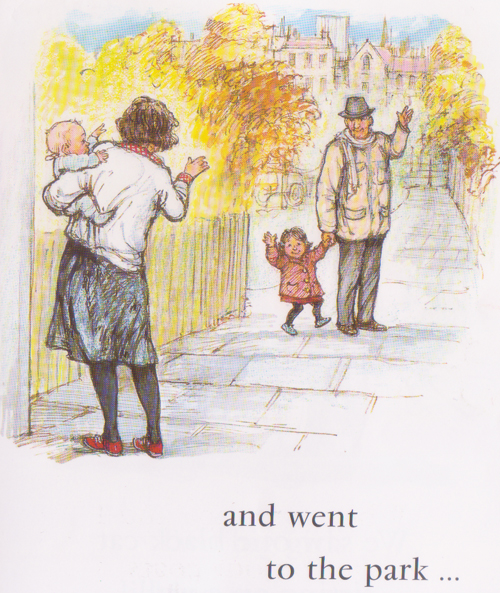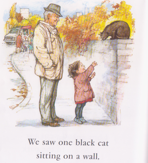 A simple story of a girl and her grandfather and what they saw & did on the way to the park. Hughes' illustrations, as usual, are wonderful. My daughter just loves the interaction of the girl and her grandad. A great little treasure!