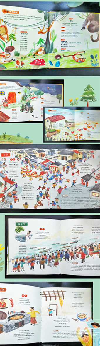 《诗歌里的传统节日》和《诗歌里的十二生肖》集合了传说、诗歌、古诗词、成语、歇后语,不仅用语言引领孩子学习丰富的文化知识,还加上色彩鲜艳、创意绝伦的图画,给读者视觉上的艺术熏陶,是一套精彩的综合性创意绘本。