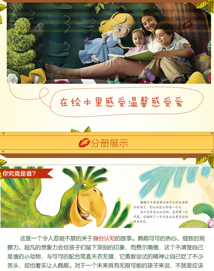 鹦鹉可可很肯定自己认识热带雨林中所有的动物。但有天这儿出现了一个粉红色的、肚子圆圆的家伙,连可可都不知道它是谁。聪明的可可和这个不知道自己是谁的圆咕隆咚的家伙一起解开它的身世之谜,而结果则是出乎所有人的意料。《大憨熊绘本馆:你究竟是谁》是一本会引得大家开怀大笑的绘本。还有一点,它给孩子忠于自己梦想的勇气。