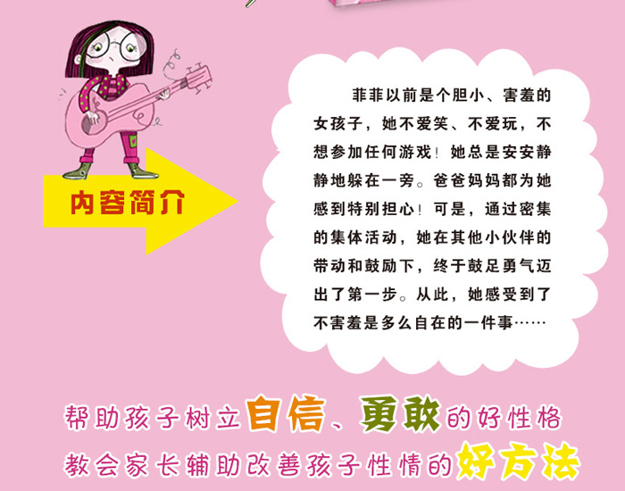 菲菲生性很安静、敏感。随着年龄的增长,她变得越来越害羞,总是不敢在人前说话,不敢尝试新的游戏。爸爸妈妈希望她勇敢一些,就给她报了夏令营。