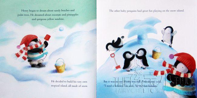 所有的企鹅宝宝都在享受雪带来的快乐,只有Henry不高兴,他感觉太冷了,他憧憬温暖的海水和沙滩。也许,是该享受一个假期的时间了...