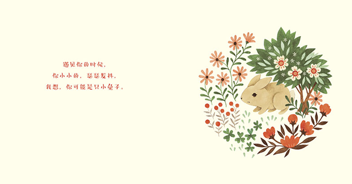 梅丽莎·马尔怀抱着刚出生不久的孩子,在医院的走廊上写下一行行温柔的话语:你小小的,瑟瑟发抖,我想你是只小兔子;我把你紧紧抱起,你就暖和了。我试着把你放下,你又踢又扭,我想你是只迷路的袋鼠;我把你轻轻装进口袋,你就安心了……