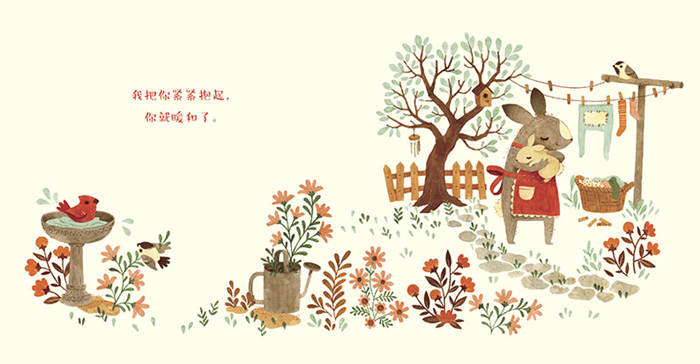 《你是我的小宝贝》也是一首极适合给宝宝朗读的情诗。“遇见你的时候,你小小的,瑟瑟发抖,我想,你可能是只小兔子。我把你紧紧抱起,你就暖和了……”在妈妈的怀抱里,听着妈妈温柔的声音朗读这样一首爱的情诗,宝宝会发自内心地感受到来自妈妈强烈而深刻的母爱,心情快乐甜蜜。共读过程中,可以和宝宝相互交流互动,表达对他的深切感情和他的珍贵,这对孩子依恋关系和情绪的发展也有很大帮助。