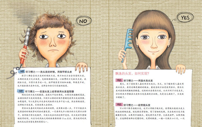 例如,在头部章节设有头发、耳朵、眼睛、皮肤、牙齿五个小类别,在头发类别中提到少女们崇尚的染发带给我们的影响,如何改造枯黄发质和自然卷等。并且每个部分的最后还总结性地设有少女的悄悄话环节,将征集上来的少女们问的最多的问题进行解答。相信这本彩绘图书一定可以令青春期的少女们轻松解决自己的烦恼。