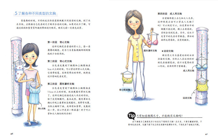 抛弃长篇大论,简洁的目录中只有头、胸、腹、性器官、腿和心理6个部分,每个部分有3~5个故事,细致地讲解了青春期带给这些部分的变化及应对方法,例如,在头部提到少女们崇尚的染发带给我们的影响;穿耳洞有何不妥;如何改造枯黄发质和自然卷等。