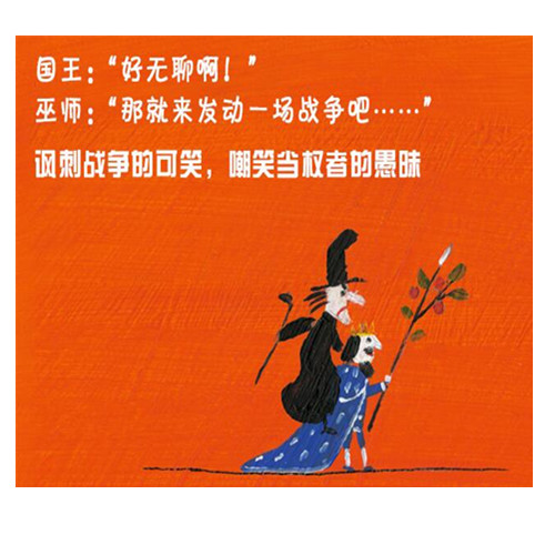 从前有一个国王,他整天都觉得很无聊,做什么事情都提不起兴趣来。有天他遇到一个号称什么毛病都能治好的巫师,问他该怎么办。巫师说,“只要打一场仗就行。”于是国王命令他的人民:拆掉房子来建碉堡,砍倒果树削成矛……大家都说,“打仗这个主意真可笑”,可是直到最后国王才醒悟过来……