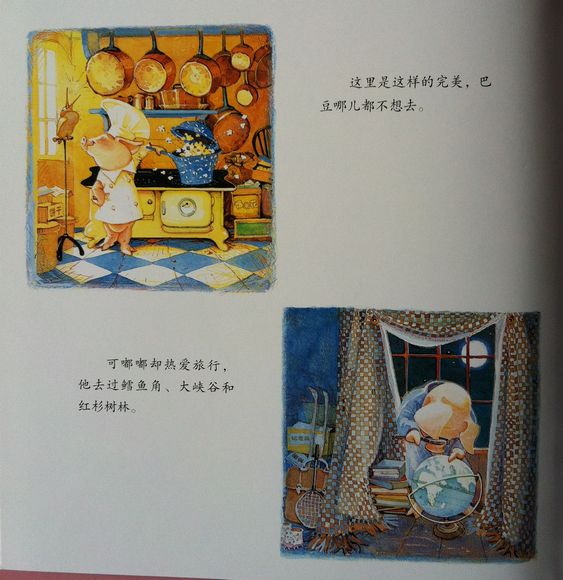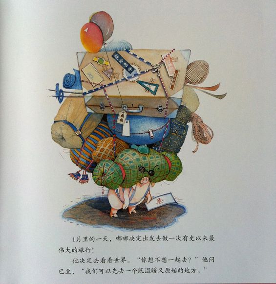 本系列书,主要围绕两只小猪嘟嘟和巴豆展开,嘟嘟喜欢旅行,巴豆恋家。女画家霍莉·霍比从1997年开始几乎每一年都会以他们为主角创作一本新书。