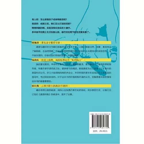 有着多年亲子教育经验的马睿欣老师,早在女儿读小学时,就开始关注互联网对孩子的影响。而今,女儿即将从伯克利大学毕业,而身边越来越多的父母跑来请教: "孩子一天到晚上网,我该怎么办?” 这个问题,真的不是一-句两句能回答得了的。教养,是认识孩子的过程,不认识,就谈不上引导、影响和改变。 为孩子上网担心的父母们,只有认真地、四面八方地去了解网络是一个怎样的世界,孩子在这张通往世界的大网上,过着怎样的生活,孩子的内心需要又是什么,才能一步步,靠近他们的世界。