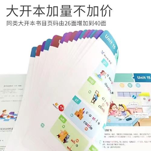 这是一套完整、系统、细致地教授自然拼读法的学习书,英语外教老师多年教学经验总结,专为中国孩子量身打造。本书分为15个单元,由浅入深、循序渐进帮助孩子从发音到拼读到拼写到阅读的能力和技巧。字母、元音、长元音、短元音、辅音、短句、对话、拼读、知识扩充等应有尽有。在功能形式上,本书采用手指点触技术,设置慢读功能,让孩子听得更清楚,学得更透彻;设置跟读功能,跟着音频一起学习,想学几遍学几遍;儿歌按键,边听儿歌边学习。掌握英语自然拼读规律及方法,让孩子看到单词就会读,听到发音就能写。
