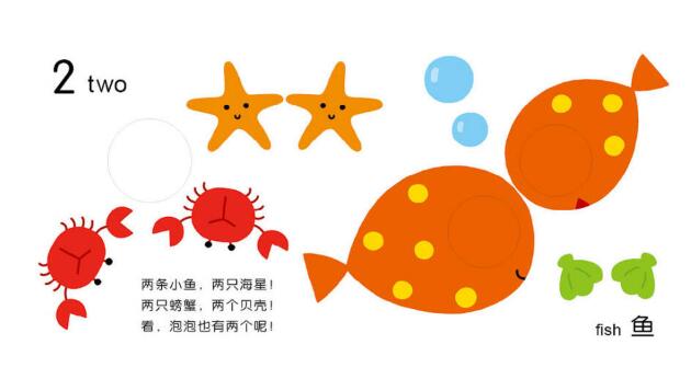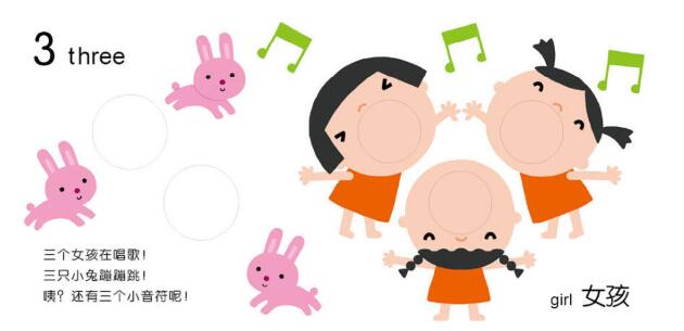 《数数有几个》——书中的洞洞由一个变成许多个,由大洞洞渐渐变成小洞洞,小宝宝在用小手抠戳洞洞的同时,可以数一数,在玩耍中念歌谣,学数数,认知不同的颜色,锻炼小手精细动作。
