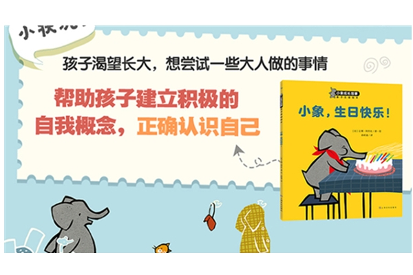小象系列是比利时作家和插画家让娜·阿什比创作的儿童绘本,讲述了小象的日常生活,与爸爸妈妈的小矛盾和与朋友的友情故事。小象的生日到了。有很多事情要做。吹气球,找蜡烛,找盘子,拿巧克力麦片。因为小象已经长大了,自己可以去够大象放在高处的书了,可以穿大象的运动夹克了。分享小象成长的过程。适合2岁以上小朋友阅读。本书附带一本游戏书,内容包含举办生日派对的“小窍门”和生日派对上进行的游戏道具等,十分实用。