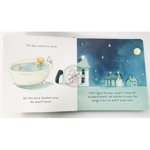 小男孩有一天遇见了一只企鹅。企鹅一句话也不说,却总是跟着他,如影相随。小男孩以为自己读懂了企鹅的沉默,他想,企鹅一定是迷路了,于是男孩希望帮助企鹅找到回家的路。小男孩找了很久,问了很多,做了很多,终于知道企鹅的家在遥远的南极。小男孩决定亲自把企鹅送回家。他又想了很多,做了很多,在海上漂泊了很久,战胜了风,战胜了浪,战胜了遥远,也战胜了孤独,因为企鹅始终和他在一起。最后,终于成功地把企鹅送回了南极。