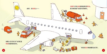 出发去机场吧! 登机前,旅客们先到值机柜台托运行李。 飞行员正在检查驾驶舱内的各项仪表…… 准备好了吗?飞机要起飞了