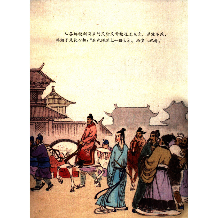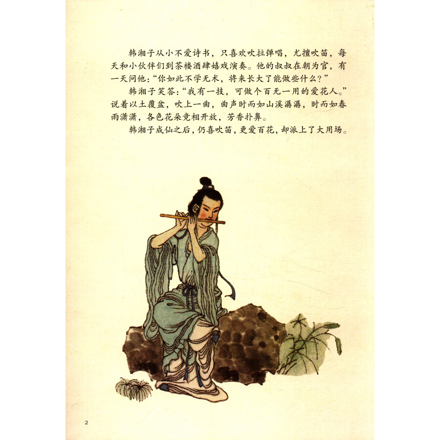 《韩湘子的故事》韩湘子爱花,爱吹笛,成仙后,看到当时的皇帝压榨百姓,他便从百花仙子处借得百花篮,皇帝想要什么,百花篮便出现什么,结果*终出来一只能开金山的开山虎,把皇帝吓死了。