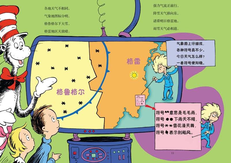 1998年,兰登书屋延续美国最受欢迎的儿童文学大师——苏斯博士的一贯风格,设计出一套旨在引导儿童在阅读中探索世界、学习知识的《苏斯博士:戴帽子的猫科普图书馆》系列。该系列图书主要向学龄前儿童介绍我们生活的世界内的基本概念,将知识性和趣味性融为一体,图文并茂,通俗易懂,能帮助儿童开阔眼界,增长知识,为将来的学习打下良好的基础。