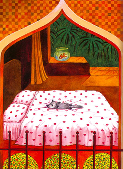 小时候我很怕猫,认为猫是一种神秘的动物。结婚后开始养猫,对猫的感觉有了转变。渐渐地,我已习惯画图时总有猫舒舒服服蜷卧着,陪伴我。