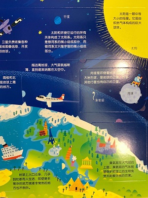 《揭秘地球》是围绕着地球展开一系列的知识讲解,从中我们了解了很多关于地球的知识,首先我们看到的是太阳系的组成,地球的档案;然后讲到了火山与地震,每个小翻页的内侧都有相关的知识点,这里还涉及到地震计的小知识;接下来是岩质地貌的相关知识;紧接着是一个大折页,看起来很过瘾哦,大折页内讲到的是多样的栖息地,列举了一些有代表性的动物以及主要的栖息地。海洋占据着地球表面2/3的位置,说到地球,我们就不得不提到水的世界,这里还涉及到了水循环的知识。后面分别讲到了天气、气候以及环保的问题,让我们系统学习了关于地球的知识,也唤起我们保护地球,爱护环境的意识。