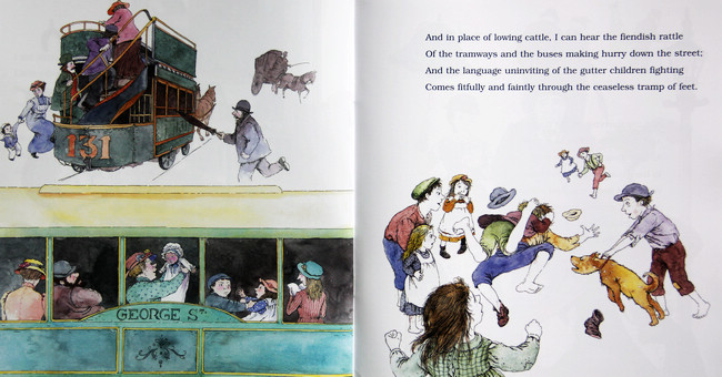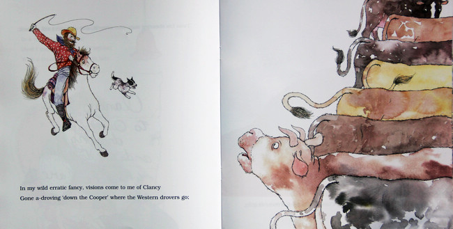 「Paterson本着律师的职责,写了一封措词严厉的警告信给债务人,劝他赶快还钱。但这封信丝毫没有发挥作用。原因很简单,澳洲内陆实在太广阔了。那封信被退了回来,上面写着”Clancy赶着牲畜到昆士兰去了,我们不知道他在哪。 ”」