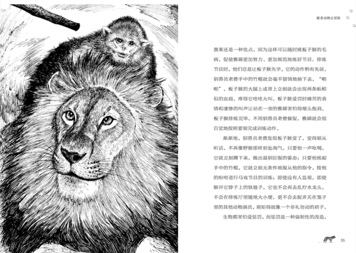 ARC国际获奖画家执掌封面,彩铅绘图斑斓生动,美不胜收;钢笔插画传神细腻,黑白线条勾勒出动物世界的原始伟力。