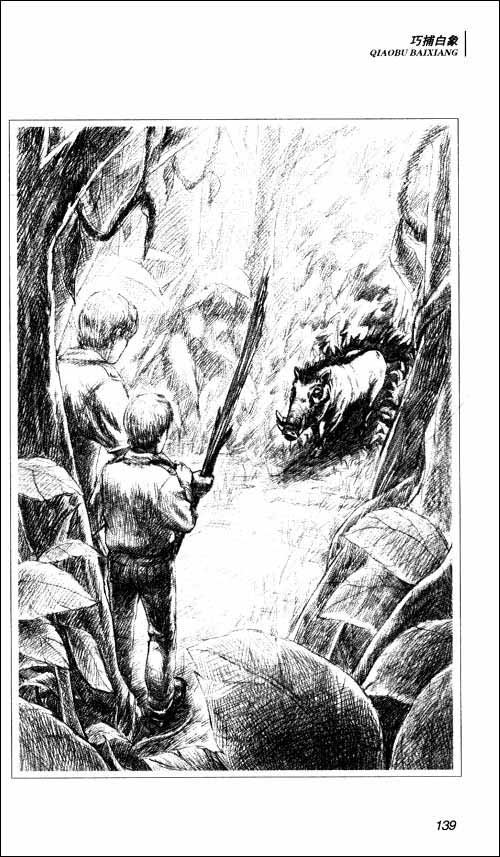 《哈尔罗杰历险记:巧捕白象》主要内容简介:“你们在向死亡靠近,”首领警告他们,“这里的群山会把你们吞噬掉,使你们粉身碎骨。”为了寻找罕见的大自象,哈尔和罗杰来到赤道。尽管有天不怕、地不怕的俾格米人帮助,他们还是连连受挫,看来俾格米首领关于厄运的预言马上就要应验了。后来,首领的儿子被绑架了,哈尔和罗杰跟踪追击,发现了一群可恶的奴隶贩子,领头的是一个为达目的不择手段的家伙。