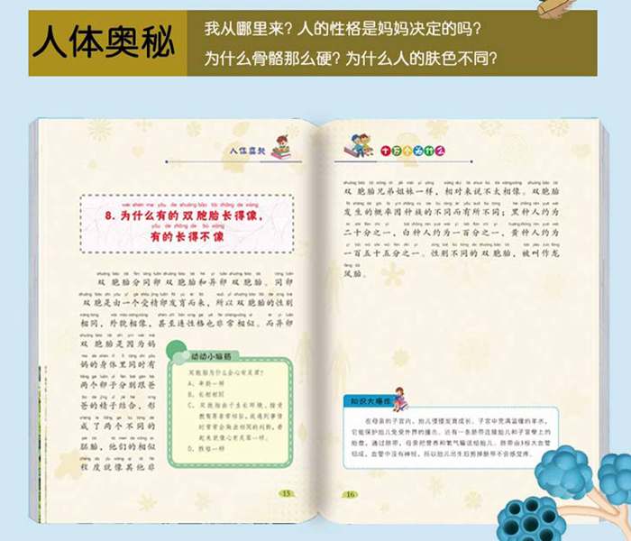 本套丛书包罗万象、融合古今,涵盖了宇宙、自然、生物、社会、科学、历史、人类、艺术等方面*令儿童感到好奇的问题,全面展示了一个绚丽多姿的知识世界。本书配有拼音标注,既可以亲子共读,共享温馨家庭时刻,也可以让孩子们轻松学习。