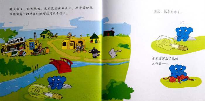 自从小矮人伊戈走后,米米波一直在想这个大灯泡能干什么用。终于,他有主意了——建一座灯塔吧!在大家的帮助下,灯塔终于建好了。米米波走上灯塔,点亮灯泡。就在这时,天空投下一片巨大的阴影……这到底是怎么回事呢?