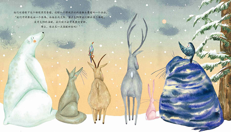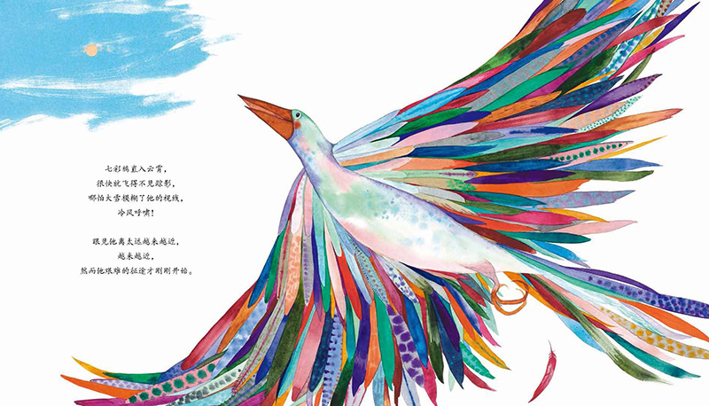 源自北美印第安人的民间故事。故事讲述了大地被严寒覆盖,七彩鸦飞去太阳那里取来了火种,拯救了万物生灵,自己却被太阳灼伤,彩色的羽毛变成了黑色。因此而自卑的他却有了意外的收获。