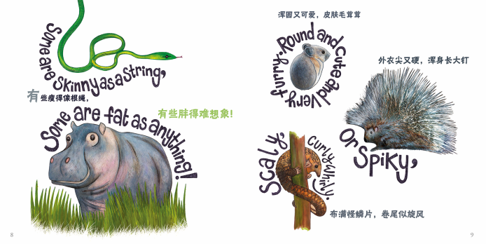 千奇百怪、形状各异、大小不同的动物,和我们生活在同一星球上,有些也许你已经认识,更多的是见所未见,在朗朗上口的童谣中,来一次动物世界的初步认识。