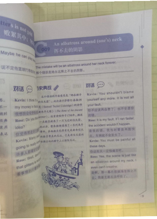 欢迎你来到俚语的美妙世界。首先,《经典英文枕边书:每天读点英语俚语》选择上百句老外*常用的生活俚语,学会这些俚语,让你的英语说得地道、听得轻松。其次,提供俚语的相关历史典故,这些历史典故不仅非常有趣,而且可以帮助你记忆俚语的含义。轻松诙谐的漫画以直接呈现或者暗示的方式表达俚语的意思,在学习之余,也会让你会心一笑。每句俚语不仅提供相应的例句,还有一段对话,让你清楚地掌握每句俚语的使用时机与方法。灵活地学习,灵活地运用,才是学好英语的关键。