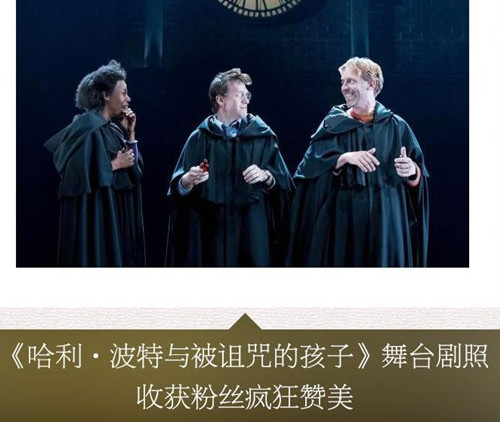 《哈利•波特与被诅咒的孩子》以J.K.罗琳、约翰•蒂法尼和杰克•索恩创作的全新故事为基础,是“哈利•波特”系列的第八个故事,是一部由杰克•索恩执笔的全新剧本,也是第一个被搬上舞台的“哈利•波特”官方故事。 舞台剧的全球首演于2016年7月30日在伦敦西区举行,紧随其后出版的“特别彩排版”剧本将把哈利•波特和朋友、家人们的新旅程带给世界各地的读者。