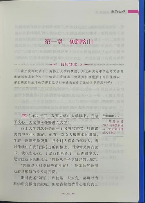 《我的大学》是高尔基《人生三部曲》之一。作者描写了他青年时代的生活经历,从中看出青少年时代的高尔基对小市民习气的深恶痛绝,对自由的热烈追求,对美好生活的强烈向往,通过深入社会,接受革命者思想影响和如饥似渴地从书籍中汲取知识养料使他得以成长。