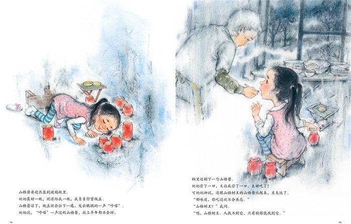 作者把快乐刻画得那么丰厚,每一幅画面都仿佛鼓满了欢快的风:袅袅的炊烟,噼里啪啦往下落的山楂果,奔跑的小姑娘和她头上荡来荡去的发辫,还有她做山楂酱时抠、洗、切、煮的动作,全都像风吹过,带着快活爽朗的气息……让人体会到生命满满的喜悦和感动。——童话作家、浙江师范大学副教授 黎 亮
