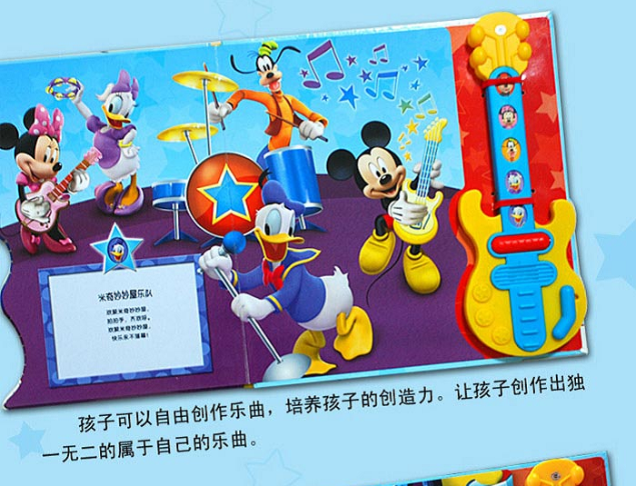 多媒体音乐书的作用:即使是年幼的宝宝也会有负面情绪,当这种情绪无法发泄时,就会大声的哭闹甚至摔打东西。可见负面情绪的释放对宝宝形成乐观正面的心态起着重要作用。这本《和米奇一起来摇滚趣味吉他书》通过摇滚乐特有的节奏和声音,让宝宝主动去释放自己的不良情绪,还能培养宝宝的节奏感,提升艺术气质。