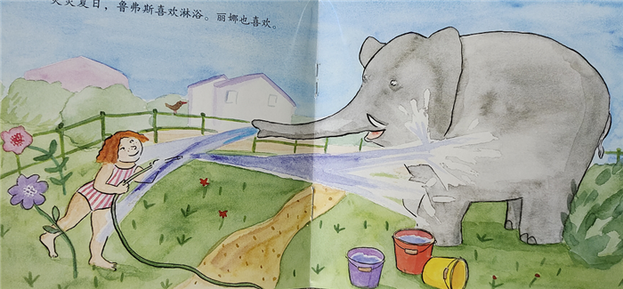 利纳斯叔叔在每年外出度假时,会把大象鲁弗斯送到丽娜家里让丽娜的家人代为照顾。丽娜和鲁弗斯是好朋友,当丽娜在家时,鲁弗斯就会在院子里呼叫,邀请丽娜去花园中玩,丽娜也会用呼喊声给出回应。他们经常一起出去玩耍。有一天,丽娜从妈妈那里得到一顶特别漂亮的草帽,却被鲁弗斯吃进肚子里去了,丽娜很伤心,后来她找到了一个办法,让自己和鲁弗斯都拥有了一顶可爱的帽子!